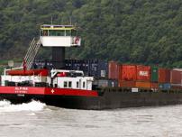 Auf der Strecke von Basel bis Strasbourg können Container wegen der Schleusentore nur in drei Lagen geladen werden. Für die weitere Talfahrt kann noch eine vierte Ladung dazukommen.