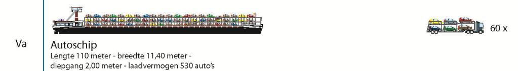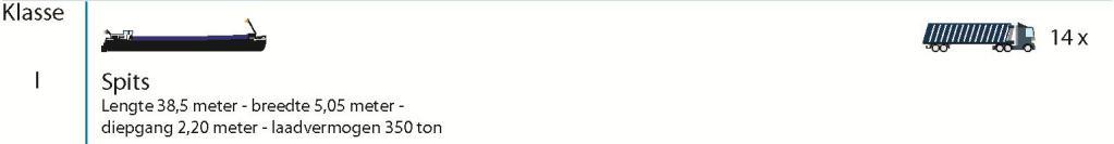 Die Schiffsklassen sind: Klasse I - Bezeichnung SPITZ, II - KEMPENAAR, III - DORTMUND-EMS-KANALSCHIFF, IV - RHEIN-HERNE-KANALSCHIFF, VA - GROSSES RHEINSCHIFF, VB - GROSSES RHEINSCHIFF, VLA - SCHUBVERBAND MIT 2 LEICHTERN, VLB - SCHUBVERBAND MIT 4 BZW.6 LEICHTERN, VA - STANDARD BINNENTANKER, VB - GROSSER BINNENTANKER, VA - AUTOTRANSPORTER, III - CONTAINER KEMPENAAR-KLASSE, VA - STANDARD BINNENCONTAINERSCHIFF, VB - GROSSES BINNENCONTAINERSCHIFF, VA - RO-RO-BINNENSCHIFF, VLB - KOPPELVERBAND SCHIFF-LEICHTER und das VLB - KOPPELVERBAND SCHIFF-SCHIFF.