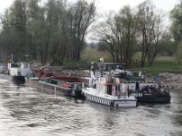 Feuerwehr und Technisches Hilfswerk (THW) kämpfen seit Freitag um die Rettung eines moldawischen Gütermotorschiffs. Die „Odessa“ war auf der Donau flußaufwärts unterwegs. Auf Höhe Neßlbach bei Winzer, Flusskilometer 2258, wartete sie gegen 13.30 Uhr die Durchfahrt eines entgegen kommenden Schiffes ab, driftete dabei zu weit nach rechts und riss den vorderen Rumpf ca. 30 cm lang am felsigen Untergrund der Donau auf.