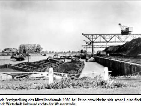 Der Peiner Hafen, 1928/29 gebaut und 1930 eröffnet, hat eine Fläche von 23 400 Quadratmetern und war Werkshafen der Ilseder Hütte. Als Hafen der Verkehrsbetriebe Peine-Salzgitter ist er der ideale Umschlagplatz für Rohstoff und Fertigprodukte. Löscht ein Frachter seine Schrott-Fracht der unterschiedlichsten Art und Güteklasse am Ostufer, wird am gegenüberliegenden Kai schon wieder geladen.