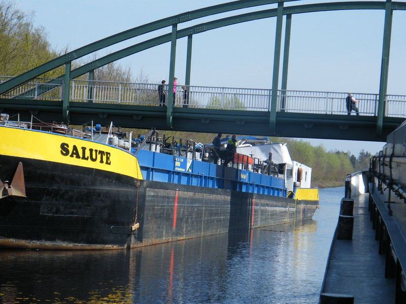 Am Montag den 11.04.2011 gegen 11.00 Uhr früh fuhr der leere Binnentanker TMS Salute, der vorher mit Speiseöl beladen war, den Küstenkanal von Oldenburg kommend in Richtung Dörpen. In Höhe Wischenstrasse/ Langendamm (K 142 – Höhe Jeddeloh II) rammte das Schiff die dortige Brücke über den Küstenkanal bei km13,55. Das Steuerhaus wurde nicht vollständig abgesenkt und blieb an der Brücke "hängen". Das Steuerhaus des Binnenschiffes wurde zerstört. Es gab bei dem Unfall einen Leichtverletzten und beträchtlicher Sachschaden. Nach Polizeiangaben hatte der deutsche Schiffsführer (42) und ein aus Polen stammender Decksmann (22) zum Unfallzeitpunkt geschlafen. Bei dem belgischen Schiffsführer(39), der den Binnentanker zum Unfallzeitpunkt steuerte, ergab eine Atemkontrolle 2,63 Promille. An der Brücke entstand nach ersten Einschätzungen des Wasser- und Schifffahrtsamtes Meppen, Außenstelle Edewecht, ein Sachschaden in Höhe von über 40000 Euro. Bei dem Binnenschiff wurde das Ruderhaus abgerissen und der Sachschaden beläuft sich auf über 40000 Euro.