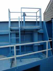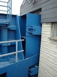 An der Unterseite des Verschlusskörpers befindet sich eine Gummidichtung. Im abgesenkten Zustand drückt die Dichtung auf die betonierte Sohlschwelle im Kanalbett und dichtet das Kanalprofil ab.